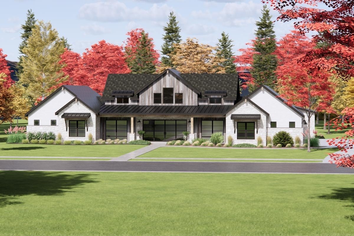 - Related Plans: Remove the clerestory windows with house plan 818035JSS and get an alternate exterior with house plan 818047JSS.
